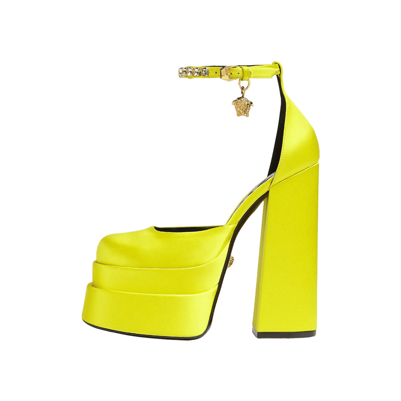 Versace Medusa Aevitas 155mm Platform Pumps Yellow Satin 1002005-DRA67 1Y02V